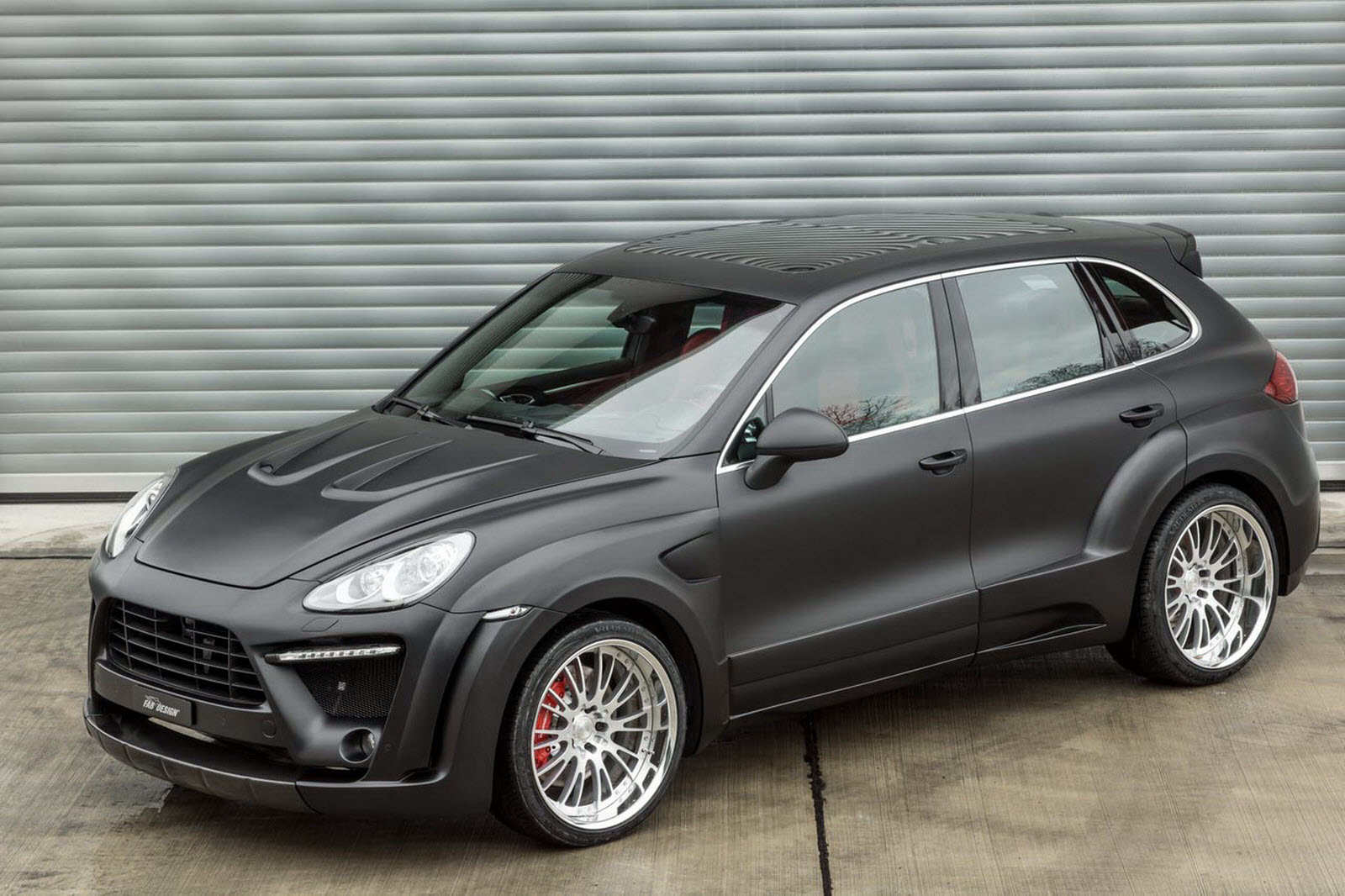 Its impressive stylistic characteristics and lift-reducing features have always been a hallmark of the FAB chassis components. The wide-body kit of the EMPEROR II is again proof of FAB DESIGN's know-how and it transforms the Porsche SUV into the centre of attention on the streets and off-road. One component of the striking front design is the spoiler that is much racier with its over-sized cooling air intakes. The two ventilation ducts on the super light, carbon re-enforced engine hood ensure additional removal of the heat accumulated in the front engine. Added width to its wings, give the EMPEROR II its highly individual flair. Supplemented by its side skirts, an impressive 130 mm are added to the production-series body, conveying a message of pure power, even if simply parked at a street corner. The FAB ultra-light carbon rear spoiler with integrated diffuser provides enough space for the sports exhaust system with its four trapeze end pipes. It flows seamlessly into the overall package of the vehicle. As an option, visible carbon parts such as rear view mirror, front lip spoiler, and diffuser can be painted in the vehicle's colours.